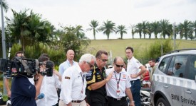 KUALA LUMPUR, MALAYSIA – OCTOBER 23: (L-R) Giampiero Sacchi, Herve Poncharal and Fausto Gresini of San Carlo Honda Gresini speak at a medical facility after the MotoGP of Malaysia was stopped following the fatal crash of Marco Simoncelli of Italy and San Carlo Honda Gresini at Sepang Circuit on October 23, 2011 in Kuala Lumpur, Malaysia. 24-year-old Italian MotoGP rider Marco Simoncelli has died following a crash involving Valentino Rossi and Colin Edwards during the Malaysian MotoGP in Sepang, Malaysia. (Photo by Mirco Lazzari gp/Getty Images)